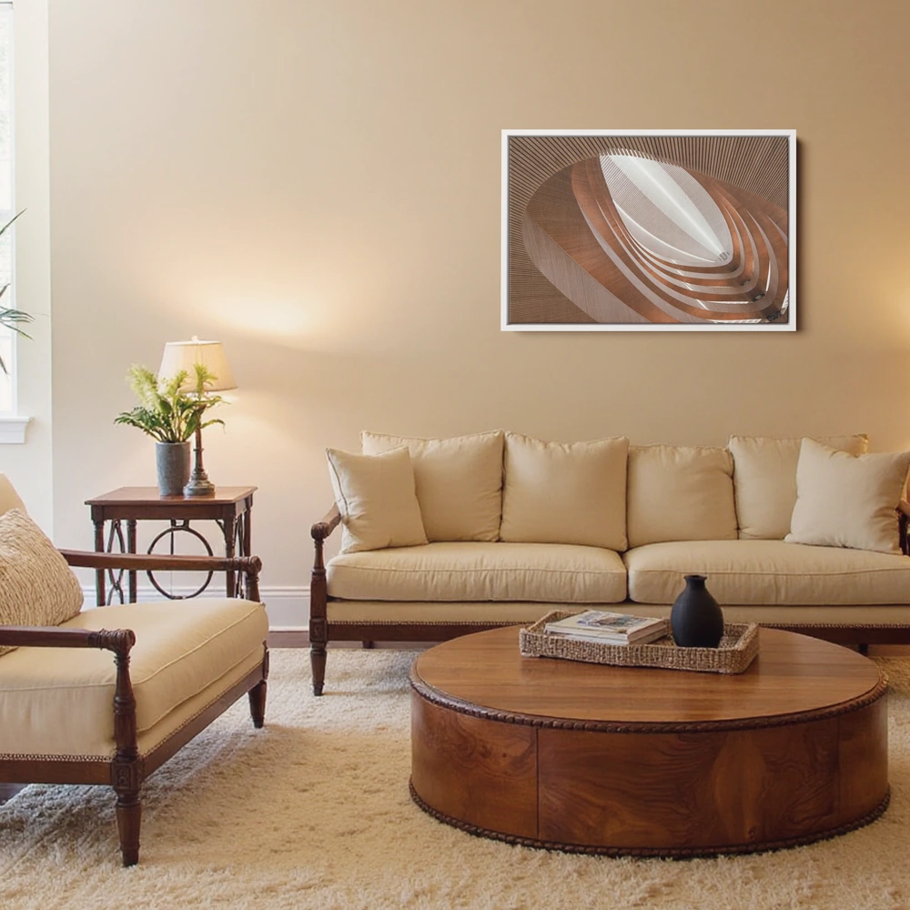 With framed canvas, the artwork appears to float within the frame, creating subtle depth and separation from the wall. It works especially well in spaces where you want something polished but not overly formal.